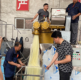 產品名稱:MJ-110米線機 鴻睿牌改良型米線機,設有自動溫控裝置,整個生產過程設備均在恒溫狀態(tài)下運行,生產時大米不需粉碎磨面,只要將大米浸泡洗凈入機即可生產,自動化程度高,操作簡單,一人即可生產,自動加料,一次自熟成型。米線機可生產米粉、米線、桂林米粉、過橋米粉、年糕等產品。加工食品外包光滑,厚薄、粗細均勻可調,筋軟適度,有彈性,口感柔軟、味道純正。 ![]()
